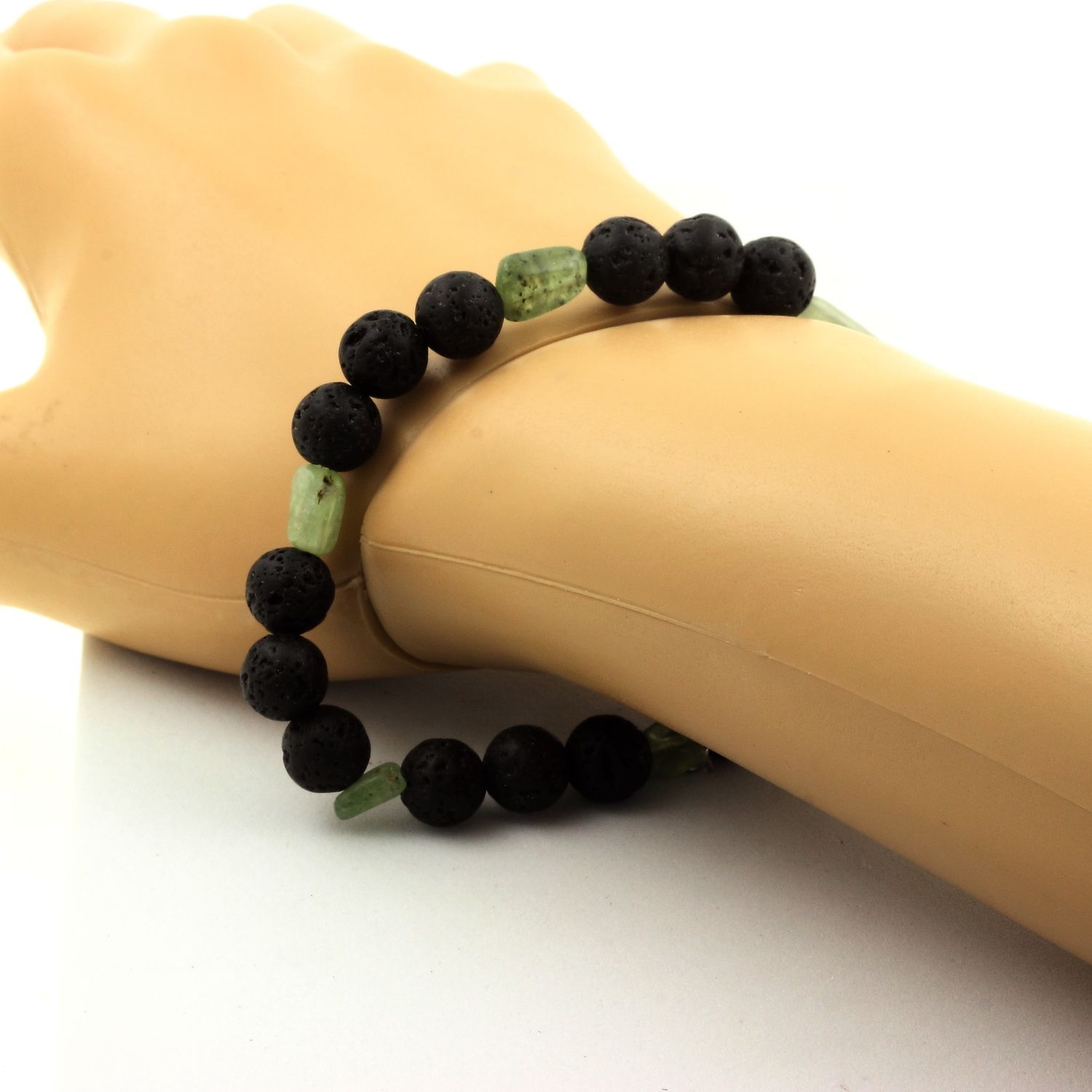 Green apatite from Madagascar + Lava Bracelet 8 mm Beads.