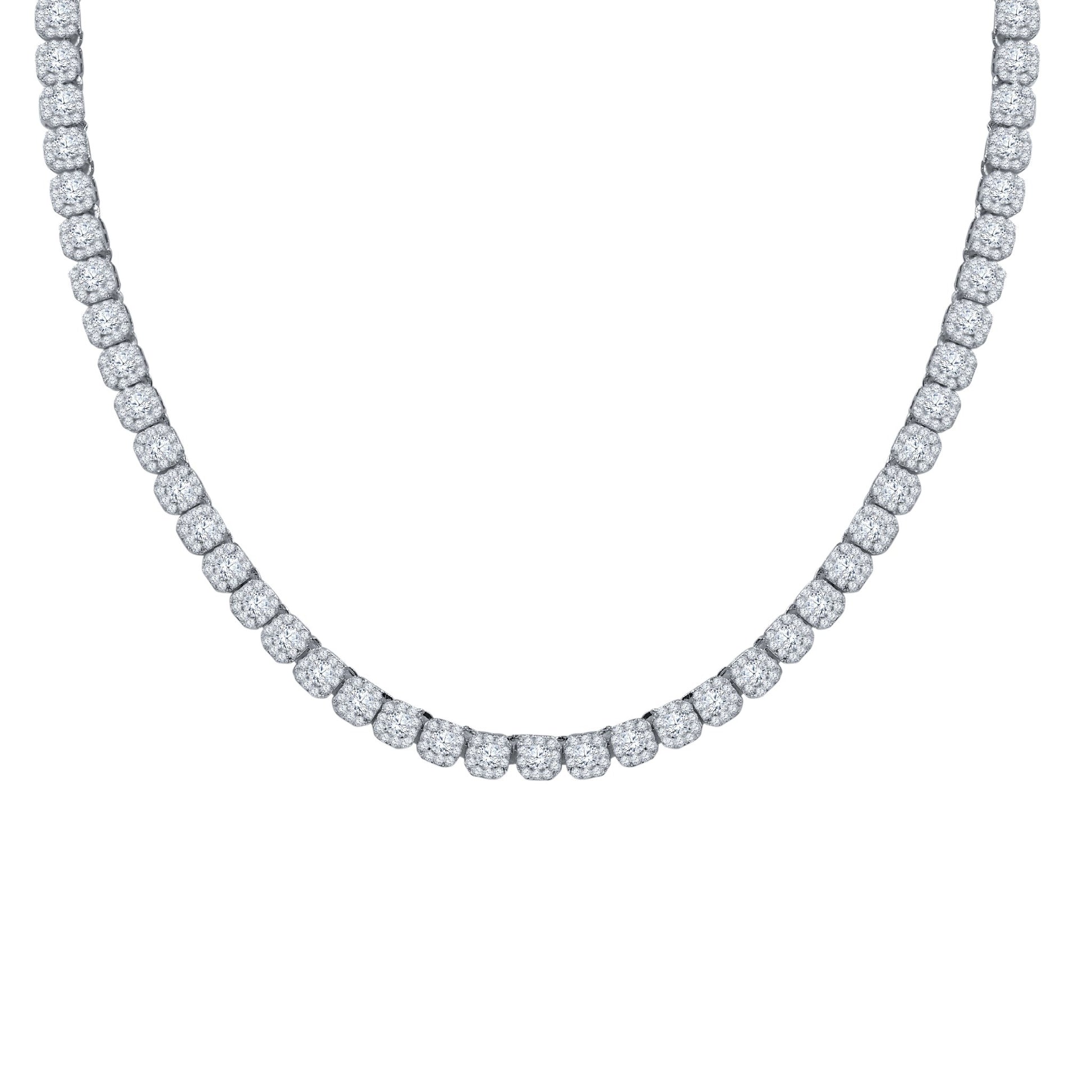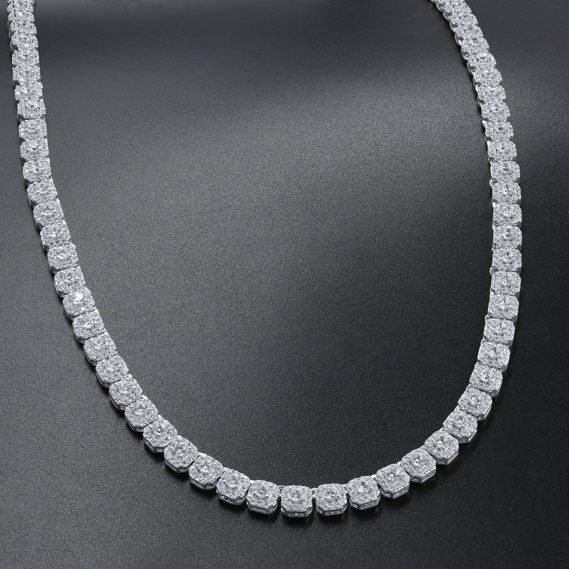 ICECUBE epitomizes sheer elegance in every solitaire shapely square used of highest quality grade faultless cubic zircon studded on the chain through meticulous artisan hand set on each link eluding to a Utopian glamour feel and appeal to any enthusiasts neck. Wear it with confidence and let the conversation begin.